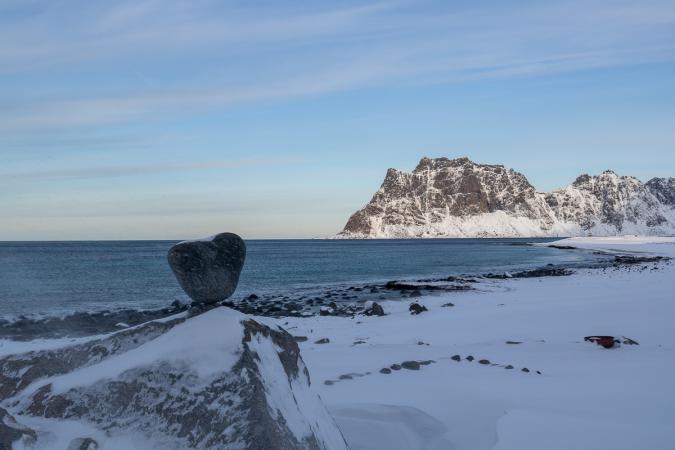 Snow-covered mountains, frozen lakes and icy, cracked fjords are magnificent. All this embellished by the sun on some days. We didn't have the worst weather, with sunshine, clouds and snowfall. Very cold temperatures in the first week, down to -20°, eased off in the second. We really enjoyed Lofoten.