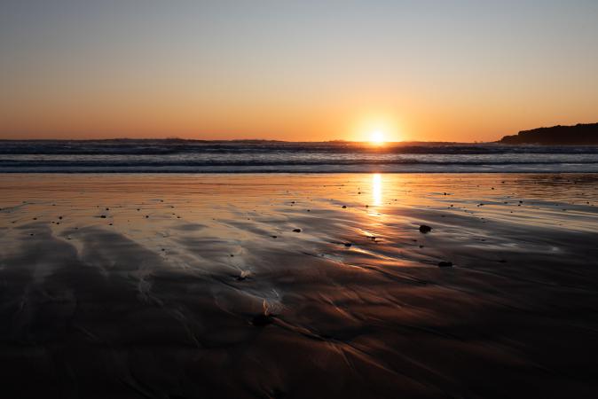 At 4.45pm, we arrive at the Opunake Beach Holiday Park campsite. The campsite is almost empty, so we set up wherever we like, on the lawn in the sun. Dinner outside on our camping table. We go to see the sunset on the beach, it's so pretty!
