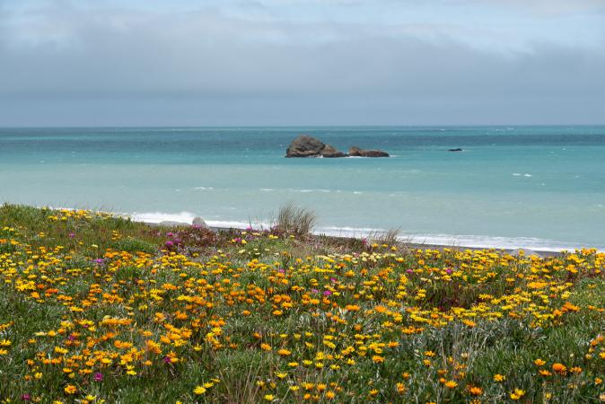 In all, it took us 2 hours to cover 5.6 km, with an ascent of 319 m. We continue along the Cape Palliser Road to the lighthouse on the southern tip of the North Island. The sun is shining! We stop from time to time to take photos.