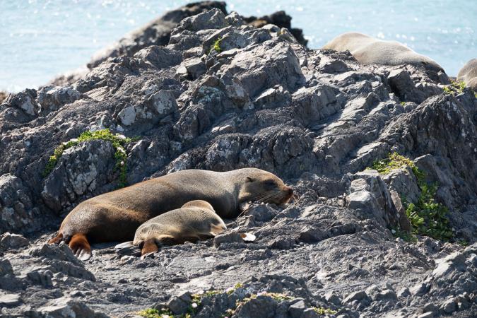 Heading back in the opposite direction, we stop to see a colony of fur seals at a place called Sea Lions Viewpoint, the largest breeding area on the North Island. They're everywhere, on the rocks, on the lawns, under the bushes.