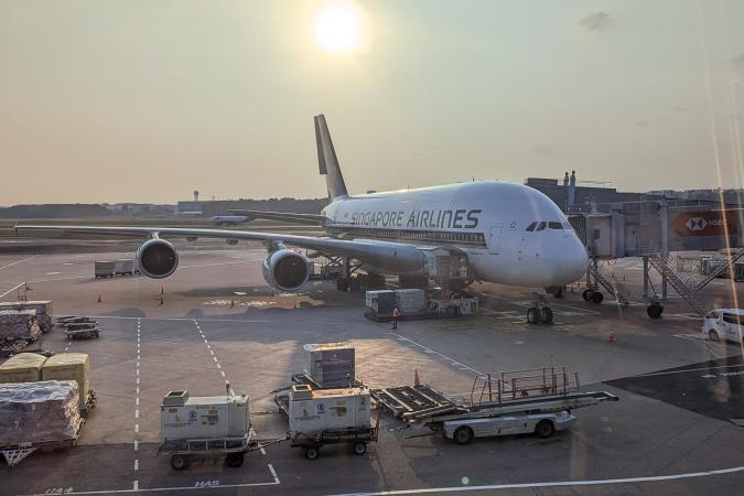 Sunday, October 15: a cab picks us up at 4pm, heading for Roissy CDG. We arrive at 6:05pm. Check-in at the kiosks, then queue at the Singapore Airlines counter. More than an hour standing and waiting before baggage drop-off. Through security, the photo bag was "emptied"! Fortunately, it wasn't too crowded. We nibble and wait for boarding. 9.50pm: delay announcement, boarding at 10.35pm instead of 9.40pm. Meanwhile, we watch the Rugby World Cup match between France and South Africa. Boarding begins at 10.50pm. We leave the gate at 11.20pm when France is defeated. Take-off at 11.30pm instead of 10.40pm.