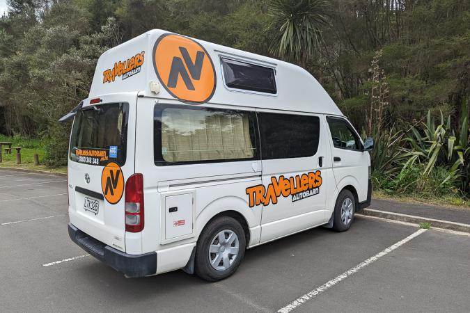 Friday, October 20: up at 6.45am. The weather is fine with a few clouds. Breakfast and packing. Depart with an Uber at 8.30am to pick up the campervan. We arrive at Travellers Autobarn. The guy introduces us to the van and we drop off our luggage. The van has 196,033 km on the odometer.