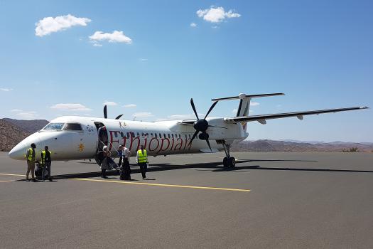 La descente se fait également sur le tarmac et on rejoint à pied le petit aéroport.