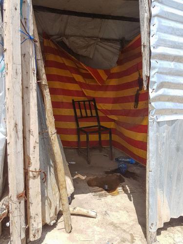 Ca fait du bien ! Le vent se lève et soulève la poussière. Elle est tellement fine qu'on en a partout, dans les yeux, les oreilles, elle colle sur la peau. Ici pas d'eau courante donc pas de sanitaires en "bonne et due forme". Il y a des toilettes turques sans eau. Et la douche, c'est juste un bidon rempli d'eau et un godet à vider sur soi. Allez, je tente ! Ça fait du bien quand même. Je me sens moins poussiéreuse. Des enfants viennent nous parler. L'un d'eux à une blessure sur le bras avec des mouches dessus. Jean-Michel propose de le soigner. Avec Michèle, ils désinfectent la plaie et lui mettent un pansement. On essaie de lui faire comprendre qu'il doit garder le pansement 2 jours avant de l'enlever (bon, il reviendra le lendemain, le pansement à moitié décollé !).