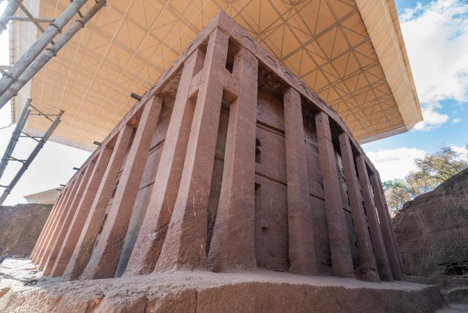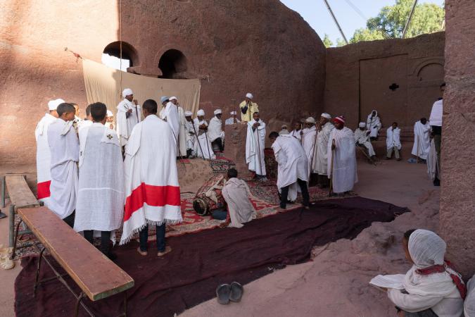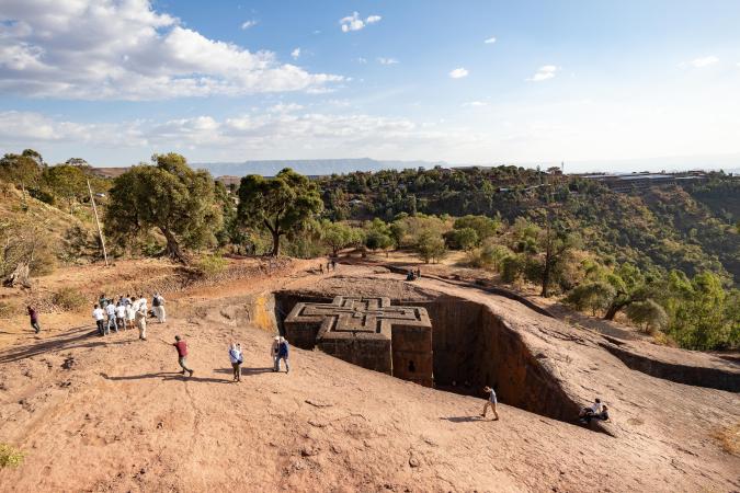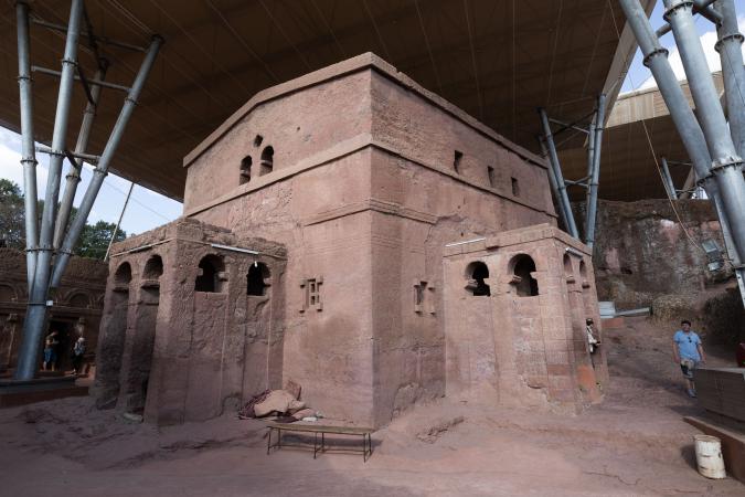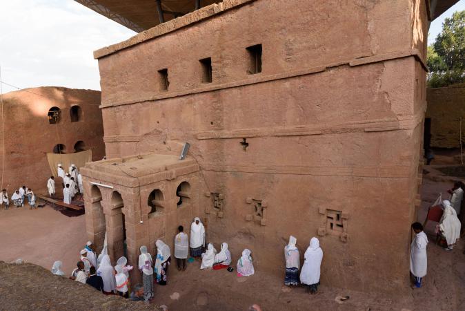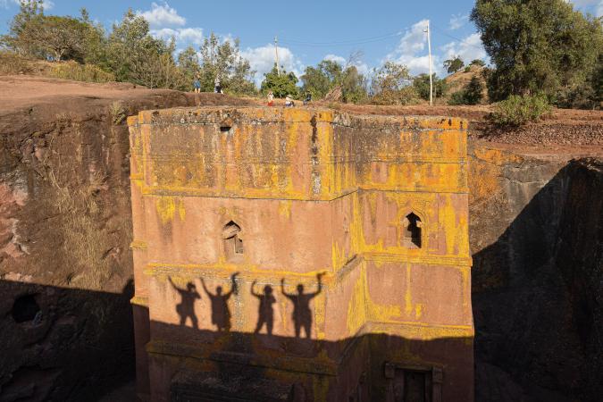 On dépose nos affaires dans nos chambres avant d'aller déjeuner. L'hôtel est pas trop mal. A 15h30, on part avec Mika visiter les églises typiques de Lalibela. On est accompagné par Ababa qui est chargé de surveiller nos chaussures que l'on doit retirer lorsque l'on rentre dans les églises et on les enlève un paquet de fois ! Ces églises sont creusées et taillées dans la roche. C'est assez impressionnant. On commence par le groupe nord.