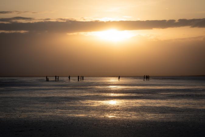 On grimpe sur la petite montagne Assalé. A son sommet, la vue n'est que mer de sel jusqu'à l'horizon. C'est immense. On va ensuite plus loin sur la mer de sel, pour assister au coucher du soleil.