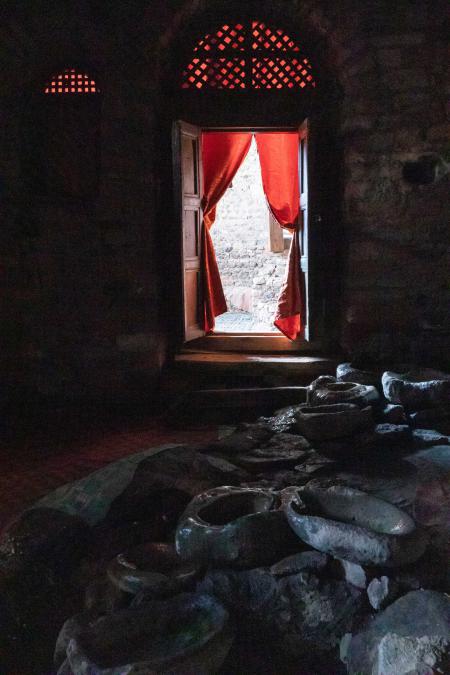 Les intérieurs sont assez simples : des tapisseries et quelques signes religieux.