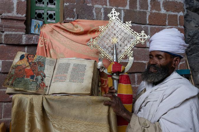L'endroit est très joli. On visite les quelques salles de prières et un prête nous montre ses trésors : différentes croix et un livre de prières très ancien.