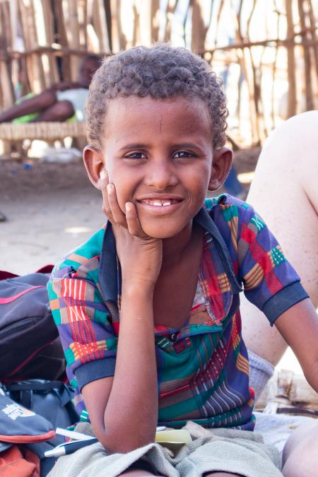 Cela nous fait penser à Yellowstone. On revient au camp à 13h45 pour déjeuner : lentilles, riz, oranges. On refait nos sacs en vu du départ de demain. Un petit garçon, Amin, vient discuter avec Étienne.
