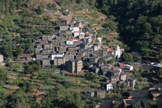 It's cute, but very busy. The temperature rises to 99° F. We then go to Piodao. We first make some pictures of the village from a distance and then we visit it.