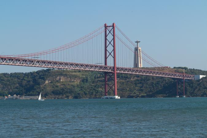 the church and convent of Graça - where we eat Pasteis again! Then we ended up taking the famous Tram n ° 28 which passes in very small streets. It is tight in the tram but it's typical! We stop again at Time Out Market and we still buy Pasteis but they are with cinnamon, we like less. We then take the bus to go to the bus stop of Mosteiro do Jeronimos. But we can see through the windows the bridge of April 25, so we go down to see it more closely. It's nice, it looks like the one in San Francisco.