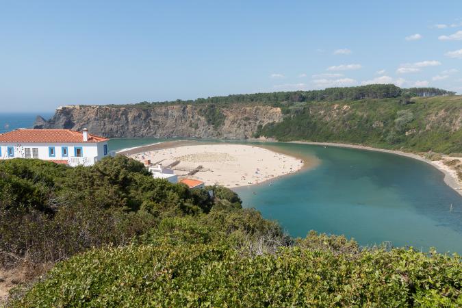 then we'll do some shopping at Intermarche by the way. Then we go to Odeceixe Beach. Picnic on a bench overlooking the river that flows into the ocean.
