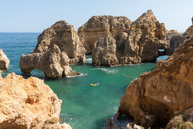 Back to the car, direction Lagos. On the way, we stop at MacDo to eat a salad. We arrive at Ponta da Piedade at 2 pm. We walk along the coast overlooking the caves, arches. It is very pretty but there are a lot of people.