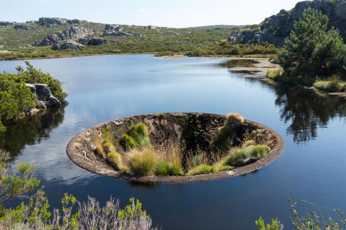 At the end of a long, painful walk in the undergrowth, we can see a small low wall and a wooden pontoon. We trace but we are stopped because it makes "fouac fouac" underfoot. Damn, there is a lot of water, we have to go around. Finally on the pontoon, finished these herbs scratching the calves! We pass above another lake that has its dam, its white "ford" with a red roof and a road that passes by. It's Covao do Curral.