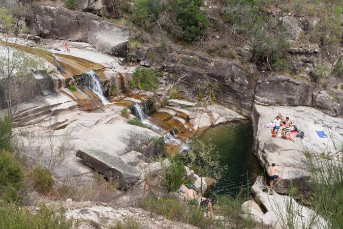 We then make a stop in Vide where a small river runs. It's hot 91° F. Then we go to Poco da Broca. There is a waterfall and some kinds of natural pools that delight the locals.