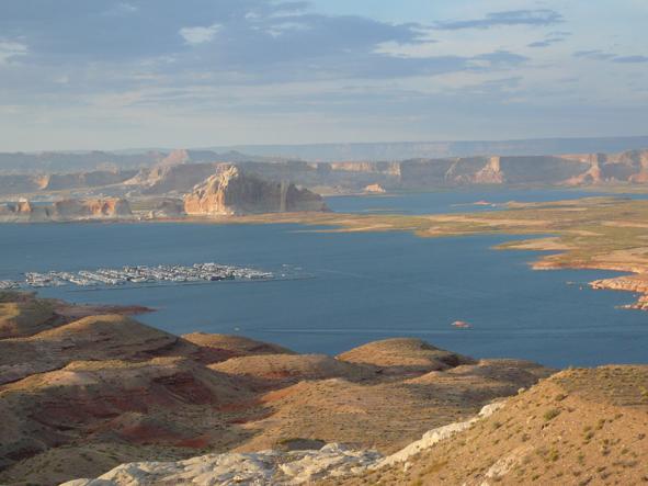Saturday June 17 : departure from Grand Canyon with stops at Navaro and Desert viewpoints. Then we stop at Cameron Trading Post. This is an Indian gift shop with lots of choice. Then we go to Page at the "Wahweap Campground," well placed in front of Lake Powell. We walk to the dam of Lake Powell and visit Page.