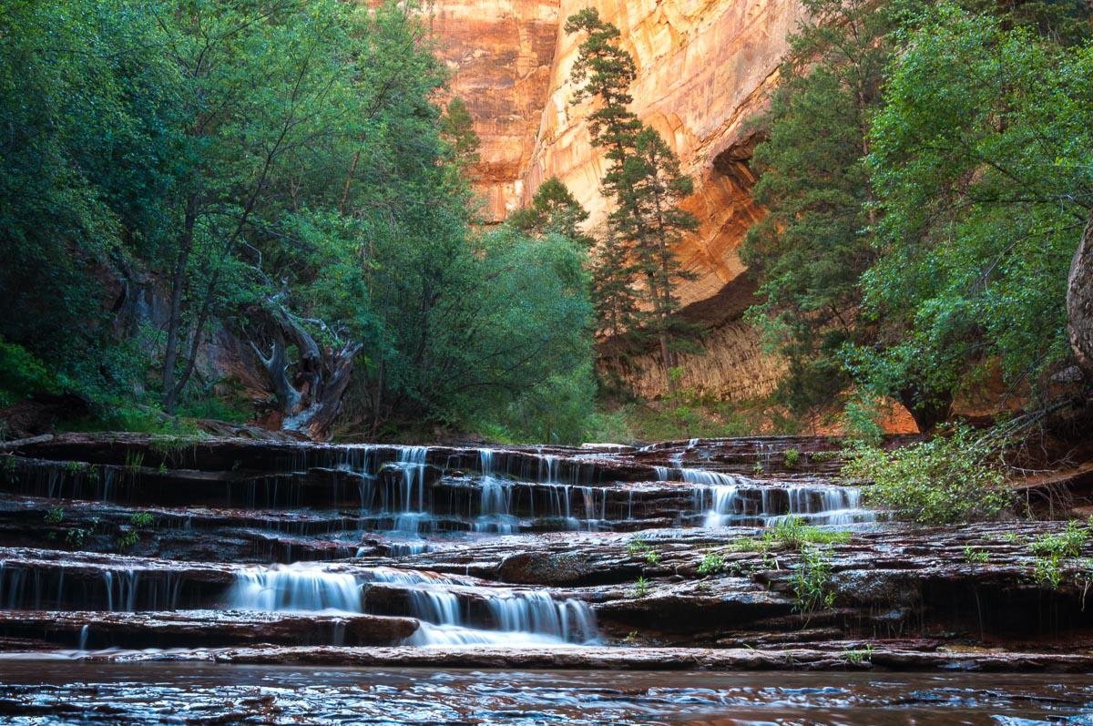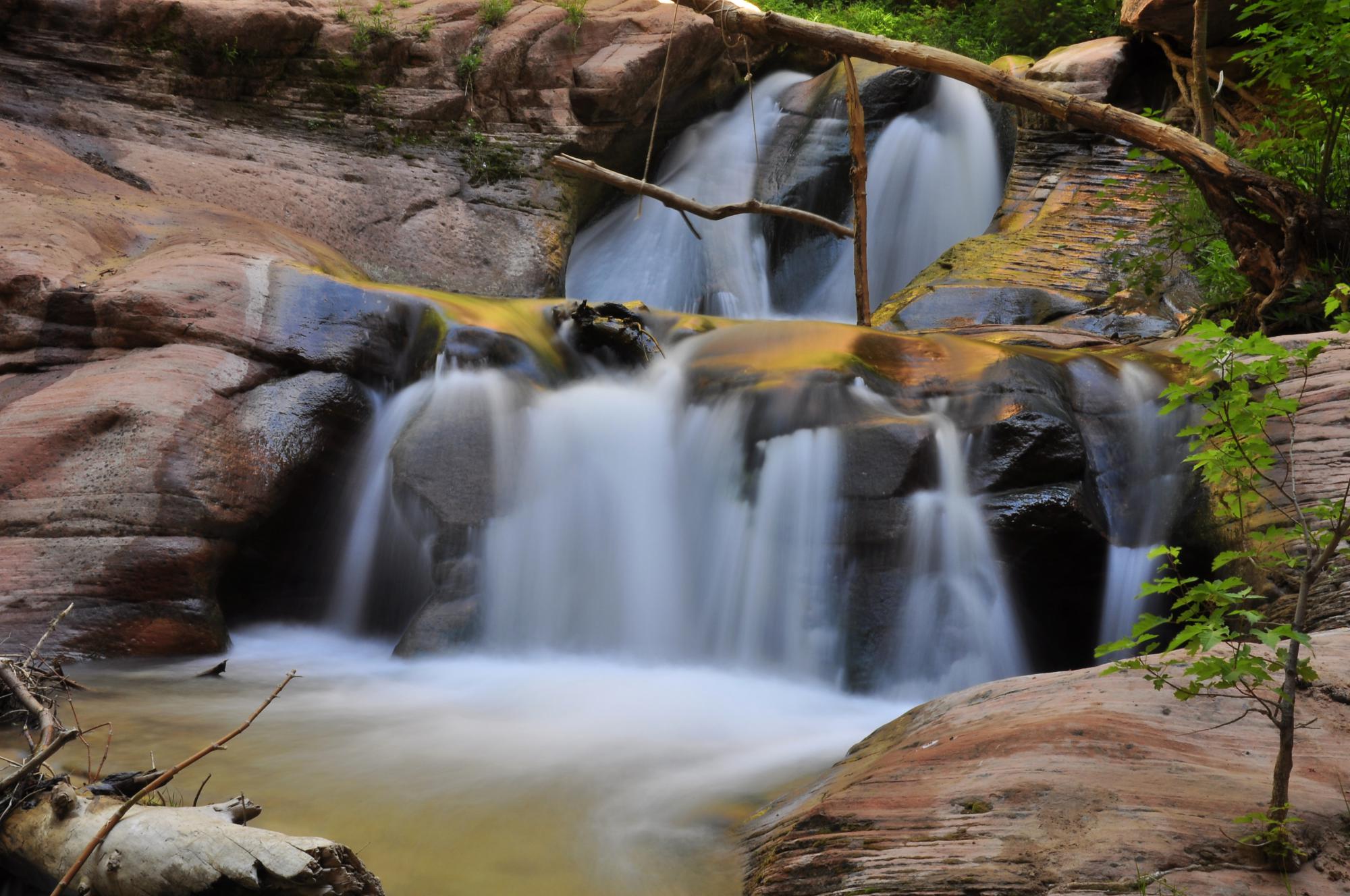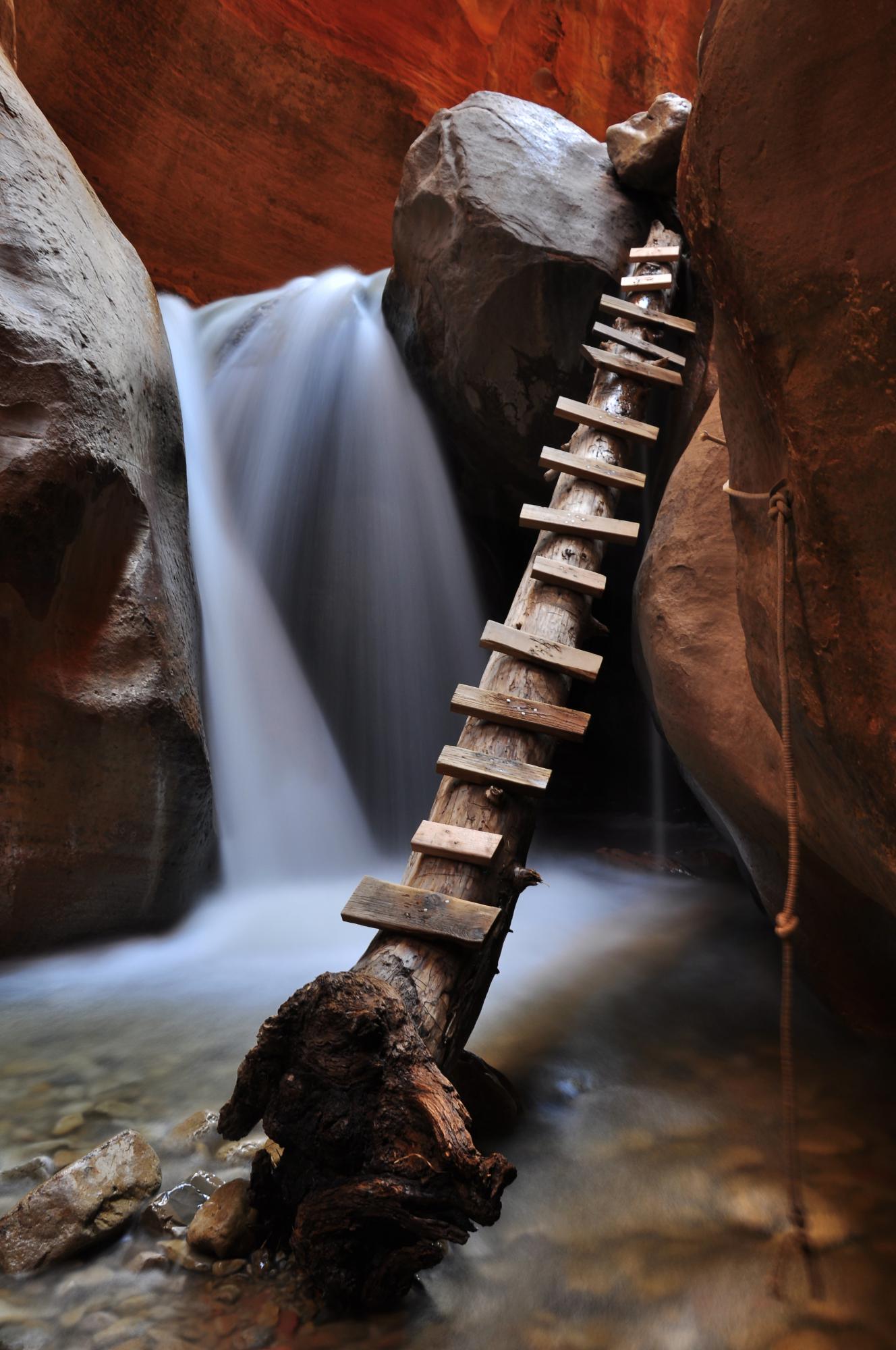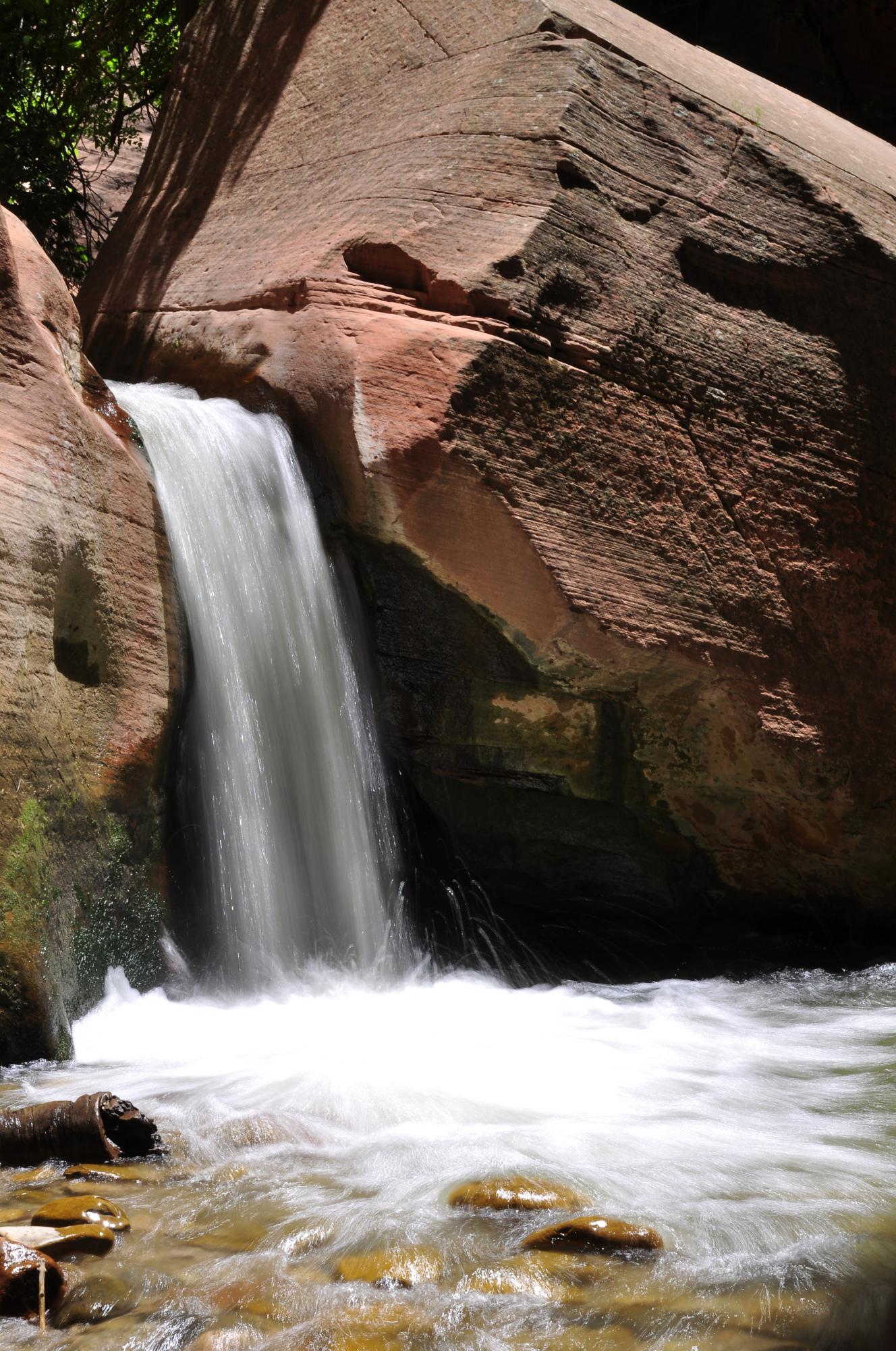 Wednesday june 23 : departure to Kanarraville for the trek to Kanarra creek (4 miles roundtrip). We reach the first cascade quickly because we did not hesitate to walk in the water very soon. on the tree trunk along the cascade, the scale has been changed since last year, so it's easier to mount on the bars of wood driven into the trunk.