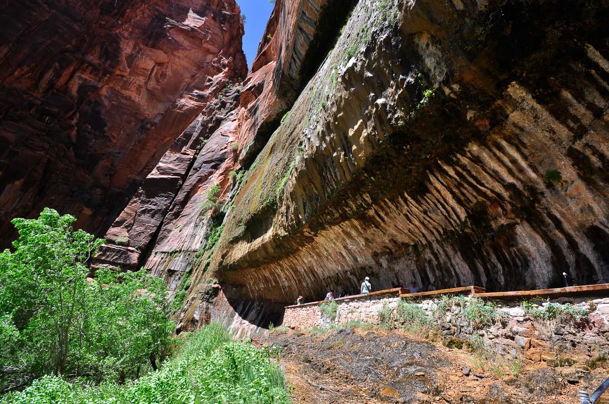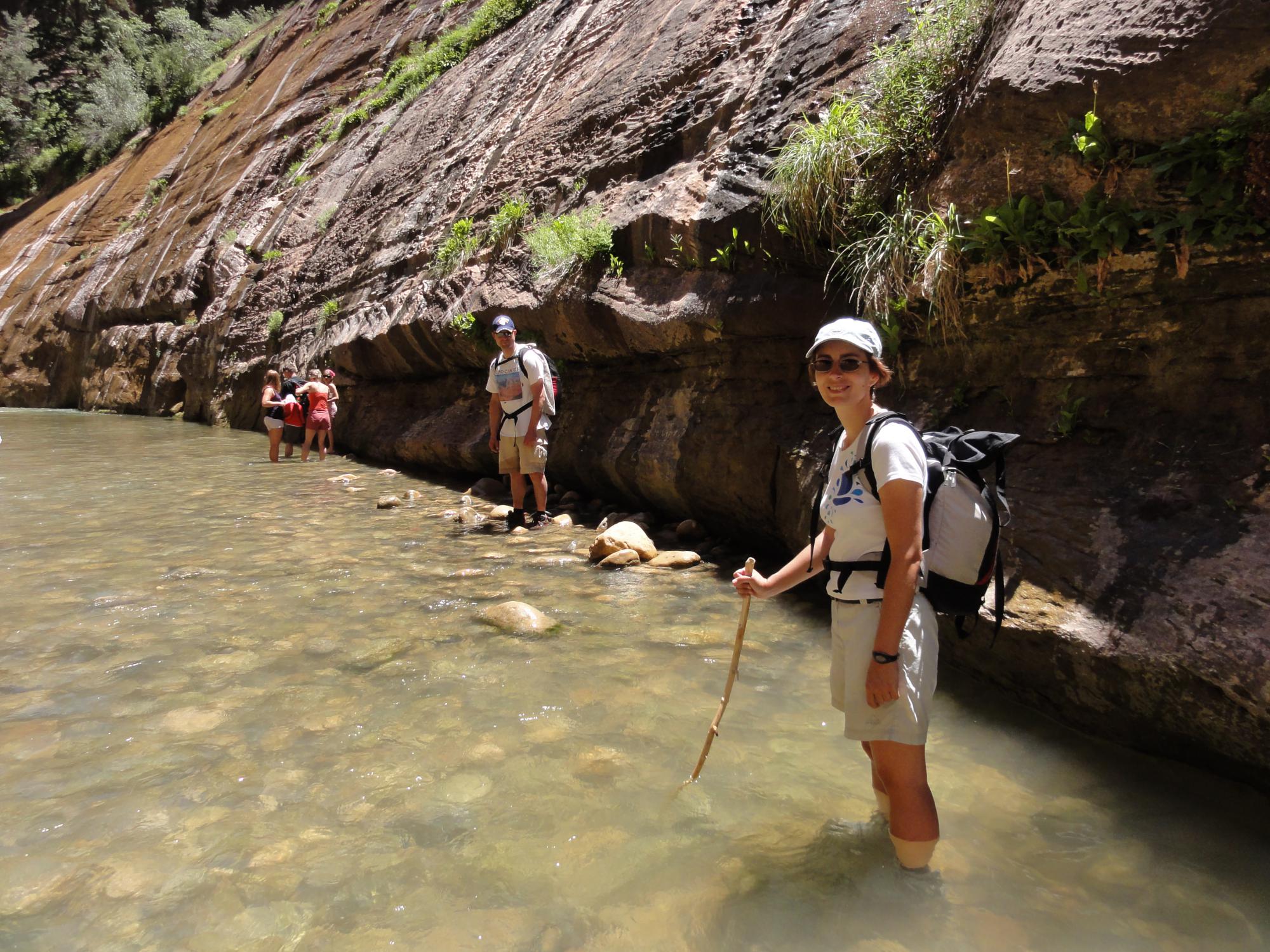 Tuesdeay june 22 : we go to the Visitors Center to do the Riverside Walk and the Narrows. At the beginning, the trek is on a paved road and finishes in front of the mountain, then you must continue in the water ! We are in the Narrows, we sometimes have water to the buttocks. The water is cold and anesthetic our legs !