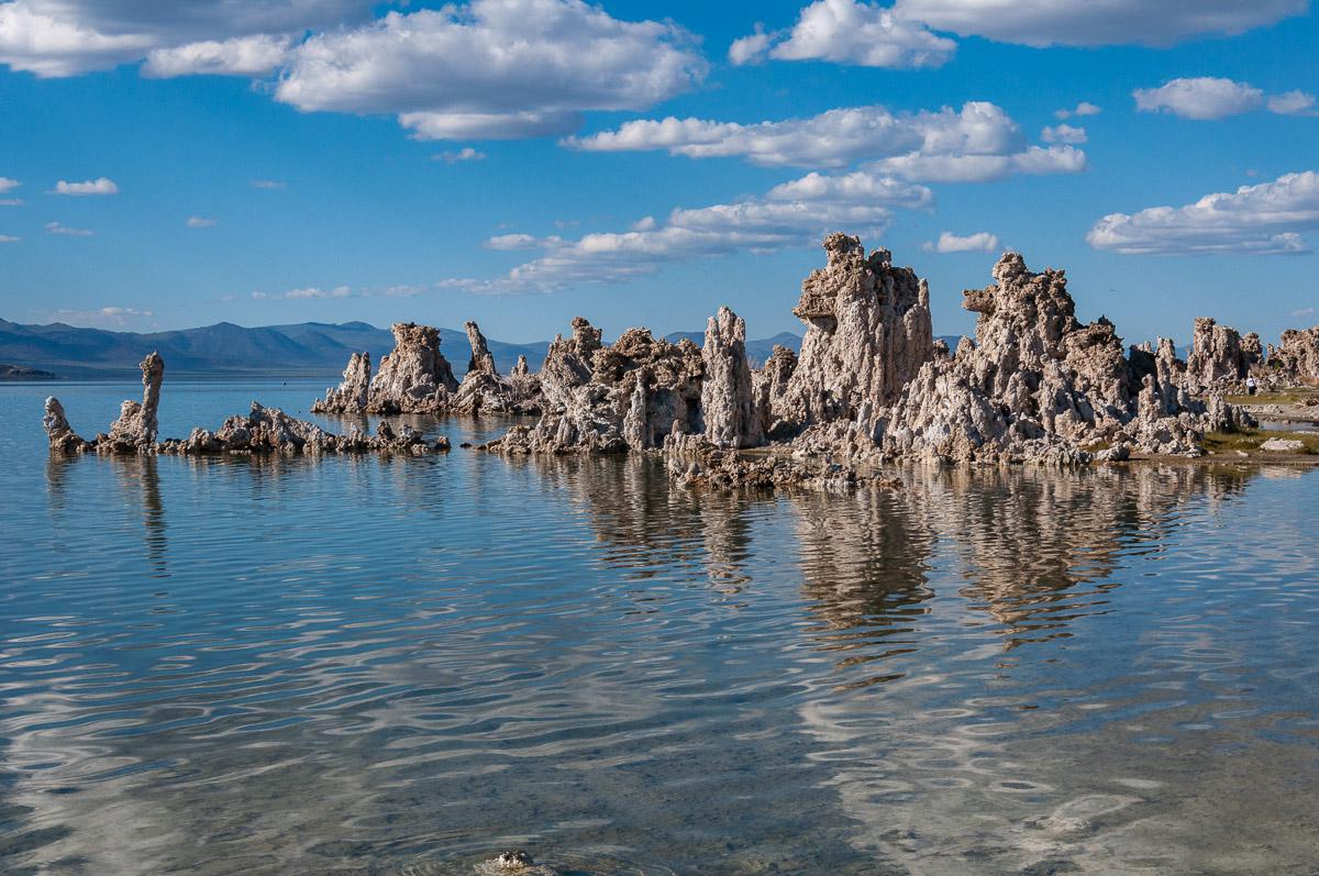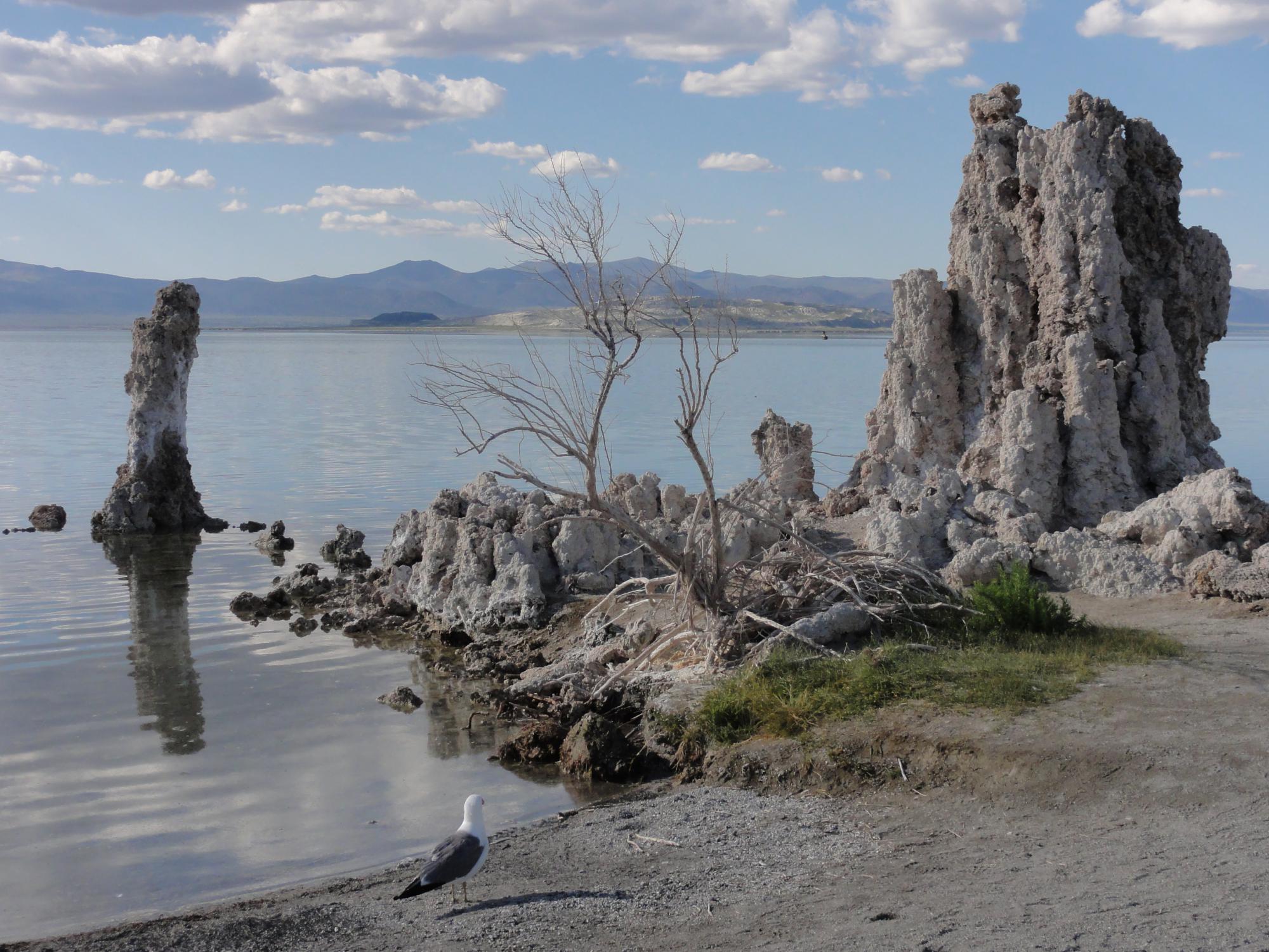 Then we're heading to Mono Lake. Hot dog stop in Big Bend shopping in Bishop. We arrive to Lee Vining at 4 pm and we settle our tents at the Mono Vista Campground. Very nice campground, at the foot of the mountains and with a view on Mono Lake. After settlement we drive to South Tufa and Navy Beach.
