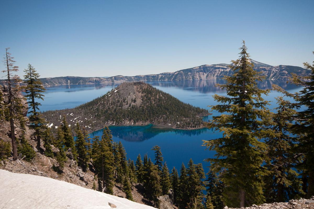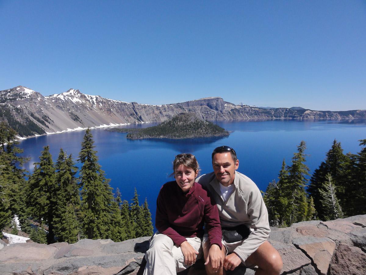 We leave then and drive to Crater Lake at 1pm. And for the first time, we enter Oregon. We arrive at Crater Lake entrance around 4:30 pm. It is 16° C and ... there is still a lot of snow! Admission fee is $ 10 for the vehicle. How beautiful it is ! and the blue color of the lake !... wouah !!