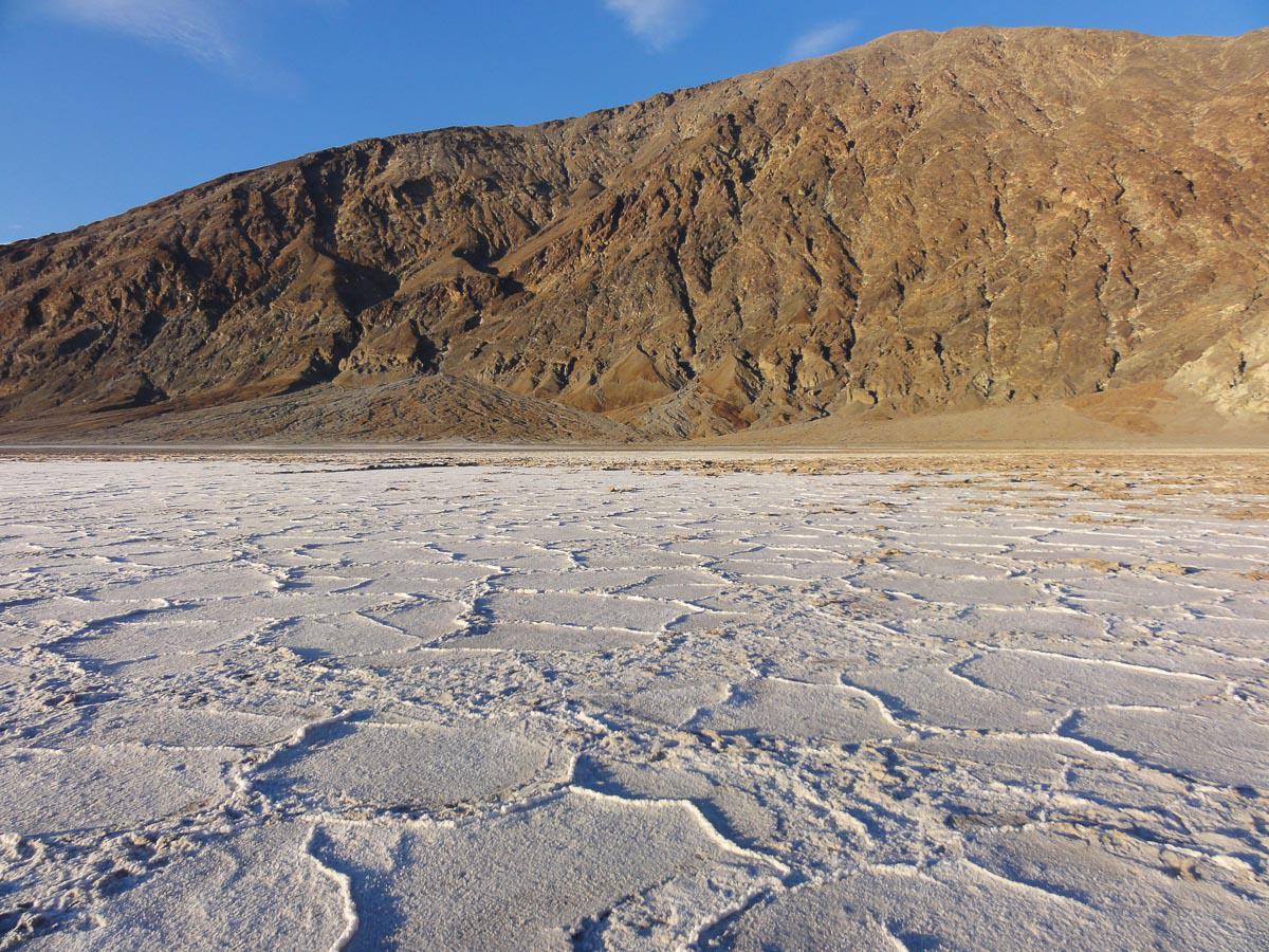 I don't feel very well, I think I have a heat stroke! I'm bright red and I prefer to go back in the car to cool ! Then we go to Badwater, it is less windy. This is the lowest point of the United States:-86m below sea level. It is a former salt lake, and when we walk on it it seems like walking on cookies.We stay here until sunset at 8:00 pm.