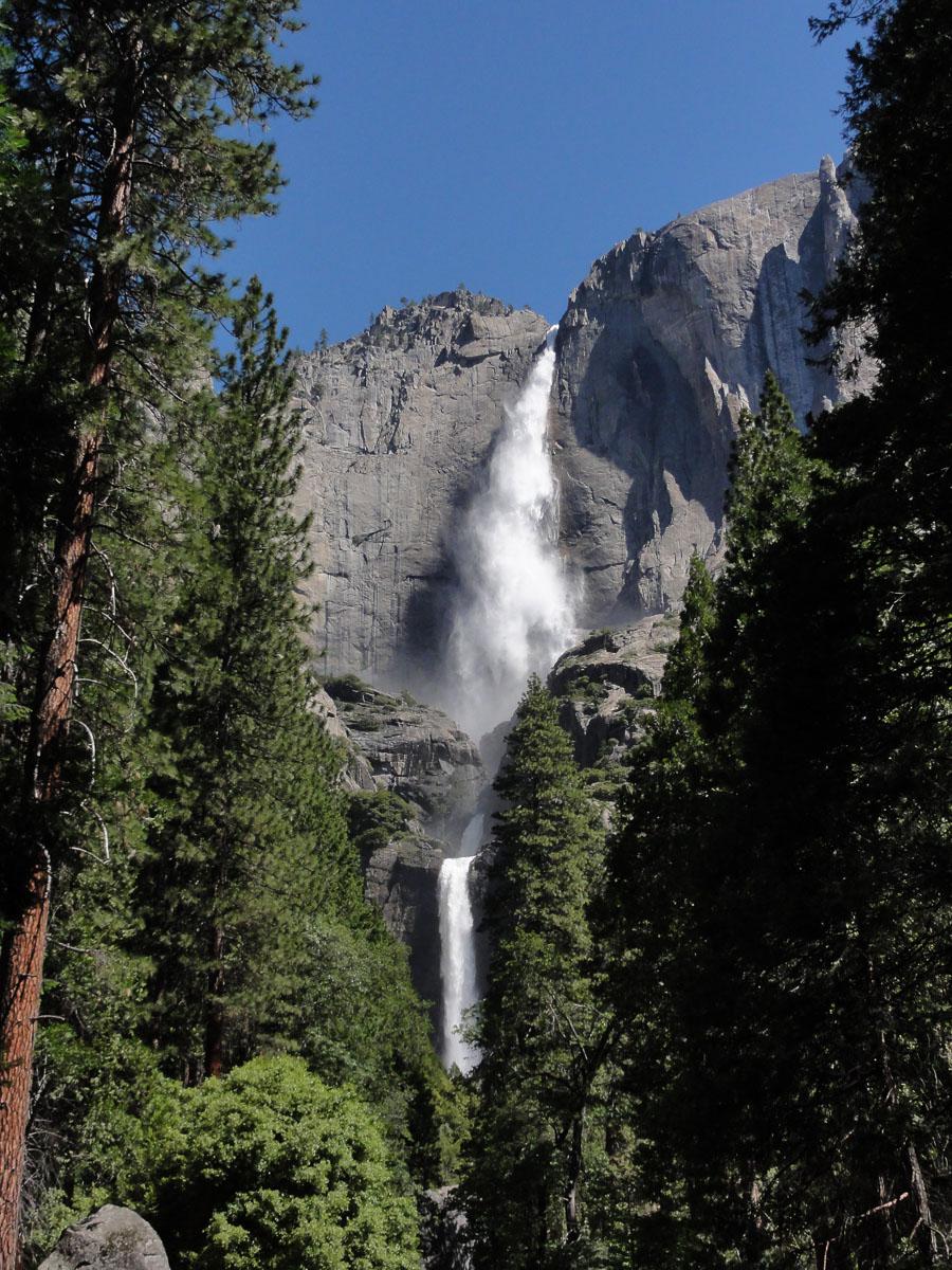Monday June 28 : we decide to leave this campground because it is too impractical and galley. We go to Yosemite Lodge to book the bus to Glacier Point for tomorrow ($ 75 for 3 of us). We then take a short walk to Lower Yosemite Fall. It's nice but crowded and not easy to photograph as it splashes a lot!