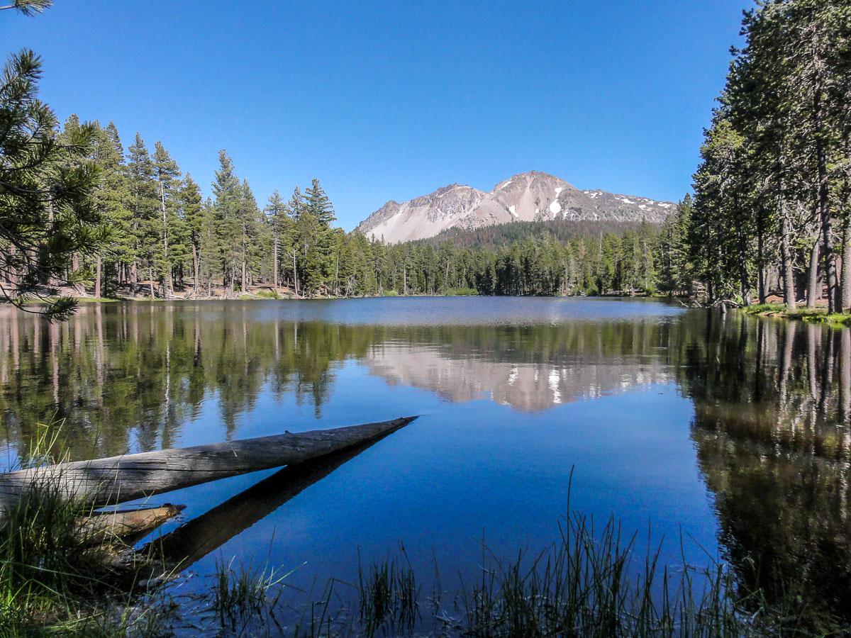 Thursday july 1st : We go back to Lassen for the Mill Creek Fall trek (10:45 am, 16°C). Well, finally this walk is shortened because we can't see the path because of the snow. We drive to the other side of the park to Manzanita Lake. We stop, before arriving in a Koa campground that seems very well (43$). Furthermore, managers, Al and Jean, are very nice. Al is always laughing. We settle the tents on straw locations. It's gonna be cozy tonight !! We eat a piece and we go to Manzanita Lake. We walk along but we can't go around completely because firefighters are triggering fires. We go around Reflection Lake on the other side of the road