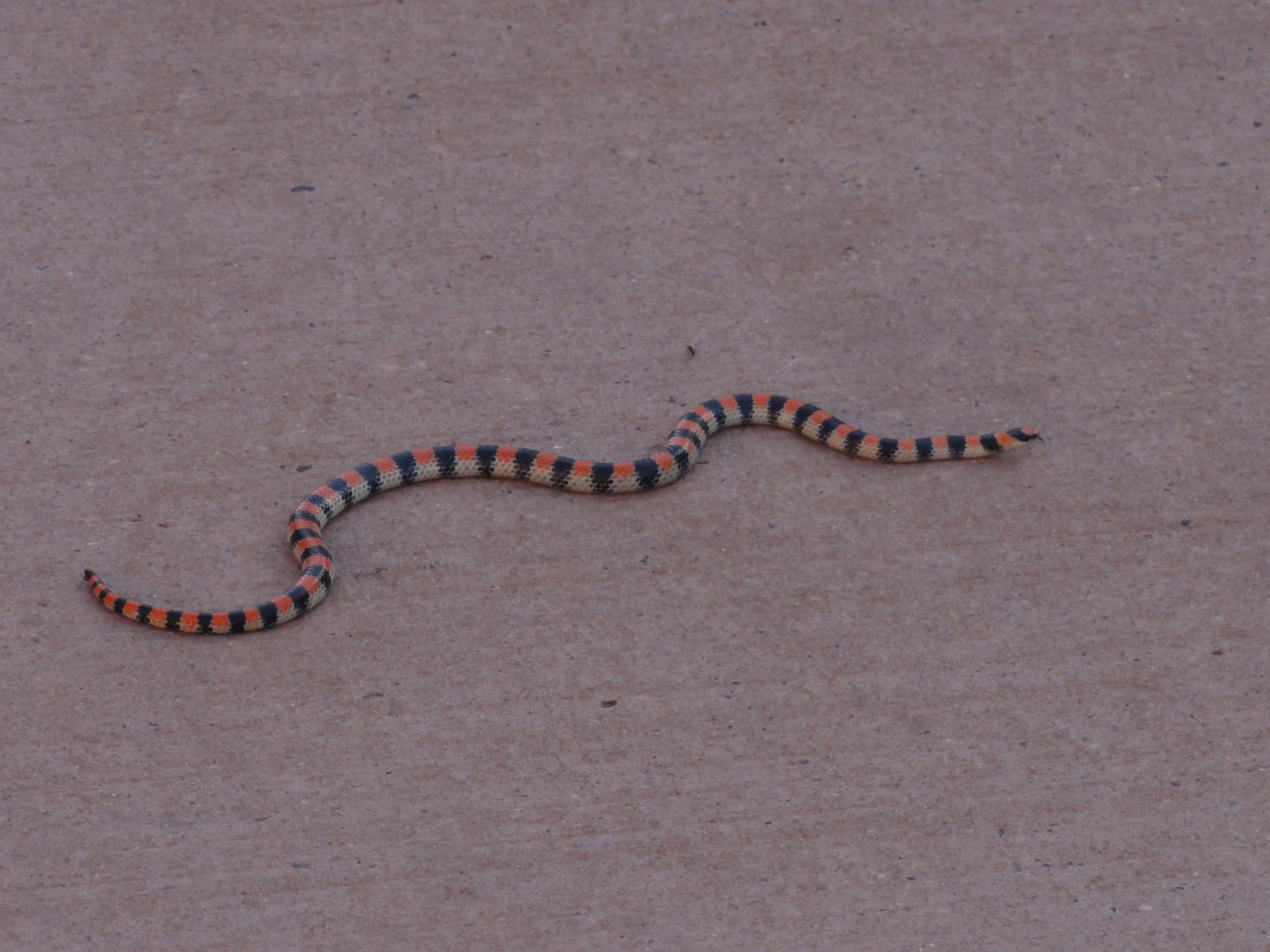 Then we stop eating ice cream at Zion Lodge. Too good! And we start to make the trek Pa'rus Trail. On the way we cross the road of a snake striped red and black.