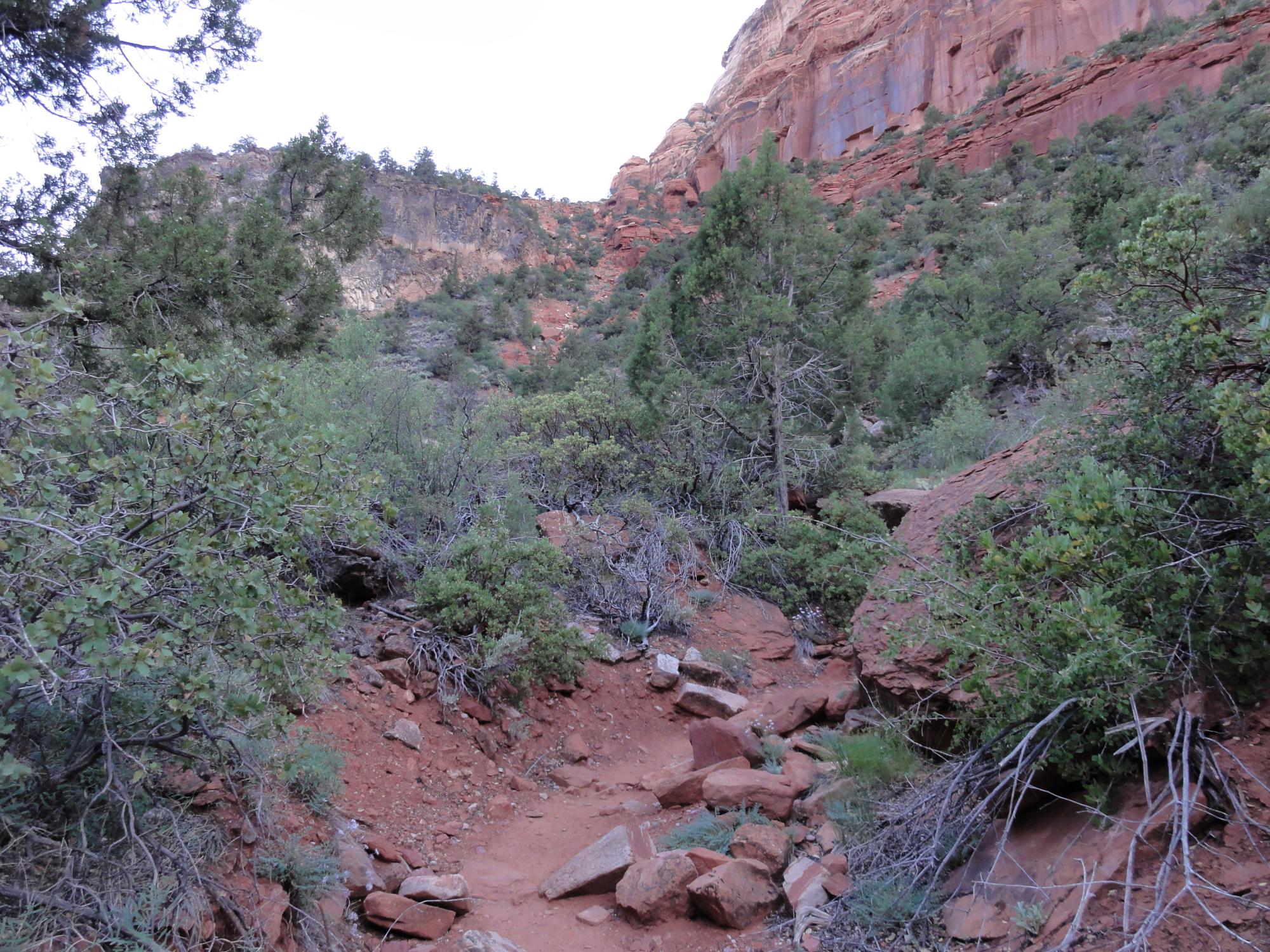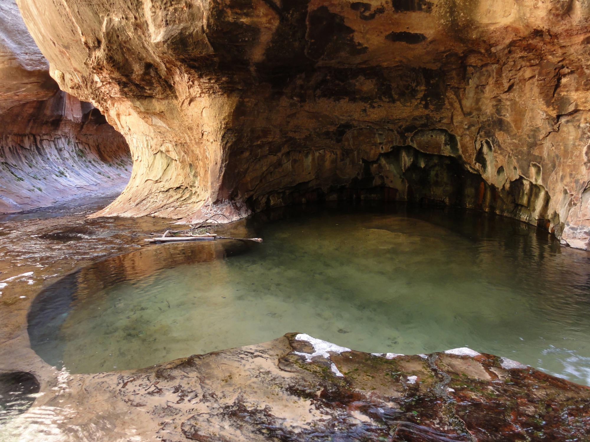 We take the way back at 2 pm. The return at the beginning is easy, we don't hesitate to set foot in the water. But then, not easy to find the path that goes back to the parking lot of the canyon. There is even a fear: thinking gone too far, we turned around and finally back on our feet and there we met two young people who confirm to be on the right trail. It thus continues without recognizing the way. We are doubled by a French who shows us the way. We eventually found the two signs back: a footprint and "Left Fork trailhead." The French told us that if we had gone too far, two yellow banners in the middle of the river would have shown our error. The final ascent is very harsh: broken knees and broken breath. Finally, we hear the cars ... one approaches the parking lot. It is 5:15 p.m. And it is 32 ° C. We return to the hotel, we have a well deserved dip in the pool!