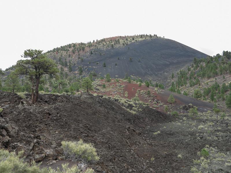 Wednesday september 17 : tropical storm Odile arrives on us. Maybe we'll have to change our plans. The worth day is scheduled for tomorrow. Departure at 9:50 am under a threatening sky (62°). We don't think it would be a good idea to go to Blue Canyon, especially since we need a permit as well as for Coal Mine Canyon to buy at Cameron. After leaving Flagstaff, we stop at Sunset Crater (accessible with the annual pass). The best viewpoint is at Lava Flow Trail. We first do the mini trail in the lava on the left of the road and we go to Lava Flow Trail which is 1 mile.