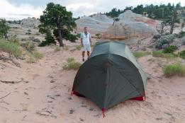La randonnée fait 18 kms aller retour via Squirrel Canyon avec un dénivelé d'environ 550m. Le début commence assez fort par une descente puis une remontée dans du sable mou. Puis il faut traverser un wash, Short Creek, et le longer sur environ 1,5 kms avant de le traverser à nouveau vers la gauche pour s'engager sur Squirrel Creek. A partir de là, ça monte tranquillement en sous-bois jusqu'à une montée raide mais relativement courte (100m) dans une "coulée" de caillasses. Et enfin, on marche sur du slickrock où ça monte assez raide et où le GPS est bien utile car il n'y a aucun chemin. La toute dernière partie du chemin se fait dans du sable. Nous sommes montés en 5h en y allant tranquillement et en faisant beaucoup de pauses et poses... photos, et picnic (temps de marche 3h30) ! Descente en 2h30.