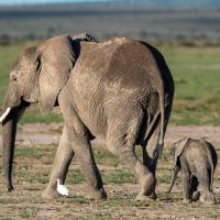 Amboseli National Park lies in southern Kenya on the border with Tanzania, which is why Kilimanjaro can be seen here on a clear day. Amboseli is one of the country's largest parks, covering almost 400 km². A national park since 1974, it was designated a UNESCO World Heritage Site in 1980. Lake Amboseli covers more than a quarter of the park, but is often empty during the dry season. After the rainy season, the lake and marshes are a haven for animals, especially hippos.
