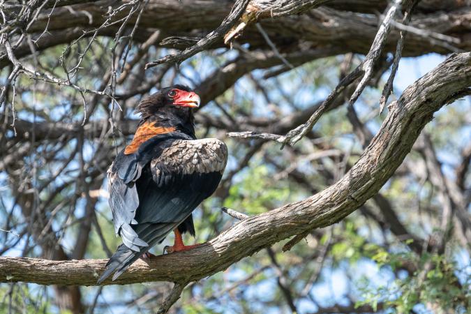 Là haut, sur l’arbre mort, il y a un aigle de Wahlberg. En parcourant les pistes, on tombe nez à nez avec 3 éléphants.