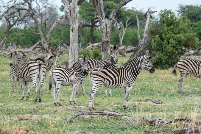 mangouste jaune, rollier, choucador de Burchell. On rencontre ensuite des zèbres de Burchell. C’est la seule espèce de zèbres à Khwai.