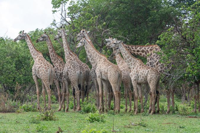 Il commence à pleuvoir. Une dizaines de girafes regardent toutes dans la même direction.