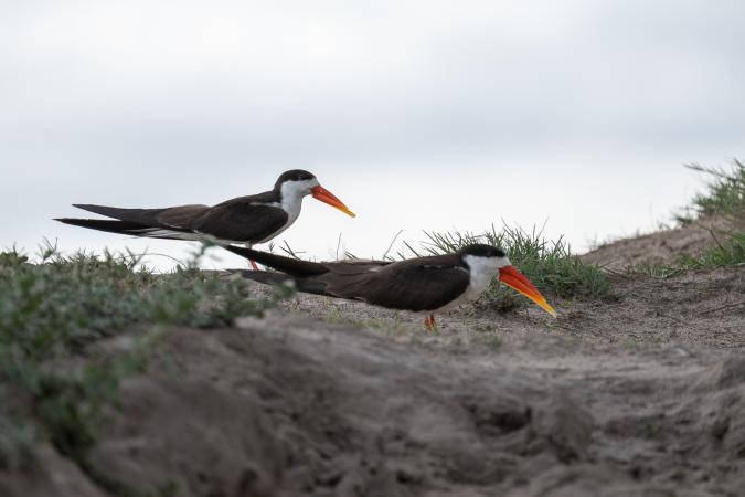 puis des becs en ciseaux d'Afrique. Leur long bec orange est décalé entre la partie du haut et la partie du bas.