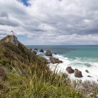 Set atop a cliff, Nugget Point Lighthouse is a Catlins must-see. At the end of a narrow jetty, the small white lighthouse dominates rocks scattered across the ocean. It's both beautiful and photogenic. The color of the water is astonishing.