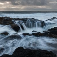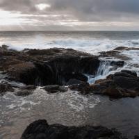 Thor's Well est un trou naturel dans les rochers. Il s'agit d'une sorte de syphon par lequel l'eau s'engouffre et jaillit au gré des vagues. C'est un endroit vraiment impressionnant mais qui peut s'avérer très dangereux pour les imprudents. Ce site est très fréquenté par les photographes au coucher du soleil, on se croirait presque au lever de soleil à Mesa Arch en Utah.