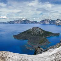 Seul parc national de l'Oregon, Crater Lake est aussi le lac le plus profond des Etats-Unis. Ce lac, créé suite à l'explosion d'un volcan, s'est ensuite rempli des eaux de pluie. L'eau du lac est d'un bleu profond impressionnant. A l'ouest, on peut voir l'Ile Wizard vers laquelle des excursions en bateau sont organisées.