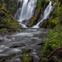 Accès : depuis la petite ville de Prospect, prendre la 62 vers le nord pendant 20 kms. A l'intersection avec la 230, prendre à gauche la 230, en direction de Diamond Lake et Bend. Continuer tout droit pendant 9.7 kms et prendre à droite la NF 6530 sur 2 kms. Arrivé à une patte d'oie, prendre la route à gauche pendant 4 kms. Prendre alors à droite vers National Creek Falls.