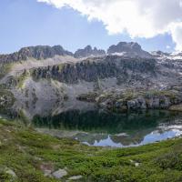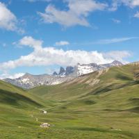 Emparis est un magnifique plateau avec des collines verdoyantes et arrondies à 2400 mètres d'altitude. Le paradis des marmottes ! Suivez le GR 54 qui descend légèrement vers une rivière qu'il faudra traverser puis remonte ensuite vers le Col du Souchet. De là, vous aurez une vue superbe sur la chaîne des Ecrins et, si le ciel est dégagé, sur la Meije. Encore une petite montée à droite et vous arrivez au Lac Lérié. Une pente plus raide mène au Lac Noir. Continuez de suivre le sentier et découvrez d'autres petits lacs. La descente se fait en douceur pour rejoindre la rivière et remonter au parking. Le plateau d'Emparis est probablement un endroit idéal pour un bivouac.