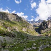 Randonnée de 12 kms aller-retour qui mène au Refuge de Chabournéou. Le sentier longe la rivière et la vallée ouverte offre de jolies vues. La dernière partie de la balade grimpe fortement jusqu'au refuge. De là haut, la vue sur la vallée est superbe.