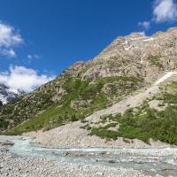 Magnifique randonnée d'environ 17 kms aller-retour qui longe la rivière Vénéon jusqu'à sa source. Bien que relativement longue, la balade est facile avec un faible dénivelé. Le sentier passe devant le Refuge du Carrelet, joli coin pour bivouaquer, traverse plusieurs ruisseaux (que l'on traverse sur des planches) puis continue jusqu'à un pont qui enjambe la rivière. De là, vous verrez le Glacier de la Pilatte qui donne sa source au Vénéon (d'ici possibilité d'aller jusqu'au Refuge de la Pilatte, si celui ci est ouvert car un arrêté préfectoral en interdisait l'accès lors de notre visite). Le retour se fait par le même chemin ou sur l'autre rive après la traversée du pont. Lors de notre passage en juin 2021, nous avons eu la chance d'oberver un chamois traversant la rivière.