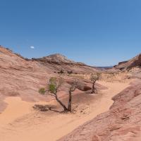 Il est également possible de combiner Zebra avec Tunnel Slot Canyon. La randonnée fait alors 12 kms aller retour. A environ 3,2 kms du début de la rando, vous arrivez à un wash. Si vous empruntez ce wash vers la droite (Sud-Est) vous vous dirigerez vers Tunnel Slot. En partant vers la gauche (Nord-Est) vous irez vers Zebra Slot.