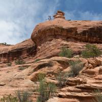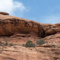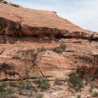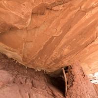 Le sentier, de 4 kms aller-retour, combine petite forêt, sable, wash, slickrok, grandes herbes. En 2 kms, on atteint la ruine de Fallen Roof après une bonne grimpette. Elle est magnifique, les couleurs sont incroyables. 900 mètres plus loin se trouve une seconde ruine, plus petite. Là, ça grimpe dur.