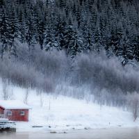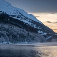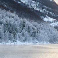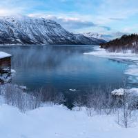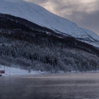 About 1:30 south-east of Tromso, there's a fjord in the shape of a crow's foot (3 fjords). Here we saw a beautiful mill and a boat stuck in the ice. On route 854, we were surprised to see an improvised “road” on the ice to Karlstad. We didn't dare venture there by car!