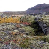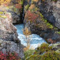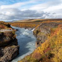 Un des sites que nous avons préféré. Pour ceux qui aiment les petites cascades, Hraunfossar est celle où il faut être ! L'eau dégouline de la roche et descend dans la rivière turquoise. En remontant la rivière, on rencontre la cascade Barnafoss moins jolie et plus classique. En septembre, avec les couleurs d'automne, c'est encore plus joli.