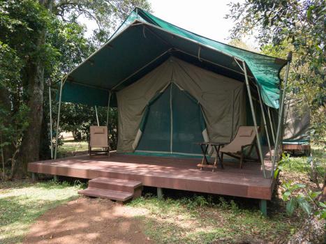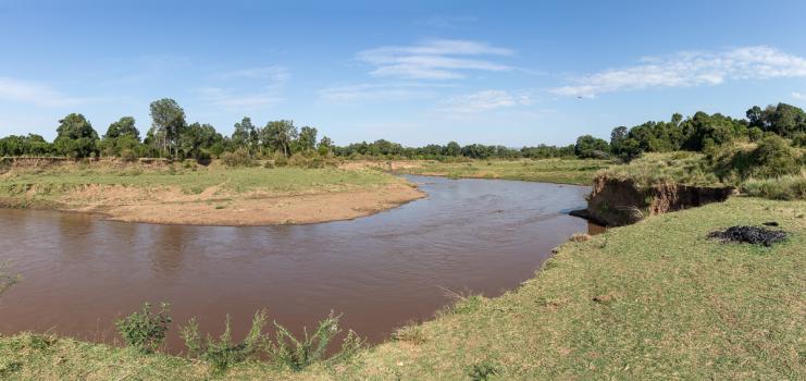 The sky is overcast. Between the works and the broken roads, it shakes a lot. And the Kenyans drive in any way and honk before every passing ! We pass by a mountain and from there, we see the Rift Valley, also present in Ethiopia. We make a stop pipi in a store of souvenirs with real wc with water (not as in Ethiopia !). We pass miserable cities/villages : earth roads, no sidewalks, houses in tin or wood, full of garbage everywhere... Herds graze along the road and their shepherd is lying on the side of the road. We stop to fill up with gasoline which is at 1,09 €. At 10:45 am, we leave the asphalted roads for tracks. We see already some zebras, giraffes, gazelles or impalas, baboons, wildebeests. We leave the track for off-road which shakes well and we arrive at Melting Pot Bush Camp at 12:30 am. The camp is located in the bush/forest on the edge of the Mara river. It is very calm except the sound of hippos in the river. We are welcomed by the team dressed in Masaï : Wilson, Benjamin and Passy. We are offered a small glass of mango juice in the tent "bar-lounge" which consists of a bar, club armchairs and low tables as well as tables and chairs to recharge the batteries of cameras and computers. Then Wilson leads us to our tent. It is called "Zebra" and the terrace overlooks the Mara River. It is very classy with 2 beds, tables for the suitcases, a small bathroom with dry toilets, sink without tap but with a thermos of hot water and a pitcher of cold water. Adjacent, a shower under the sky and the trees. So cool!