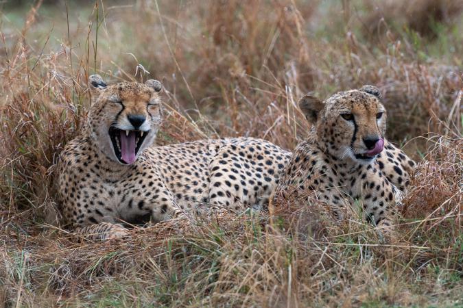 Drops of rain begin to fall then it is the deluge. We close the roof. We pass in front of 2 cheetahs sitting in the grass