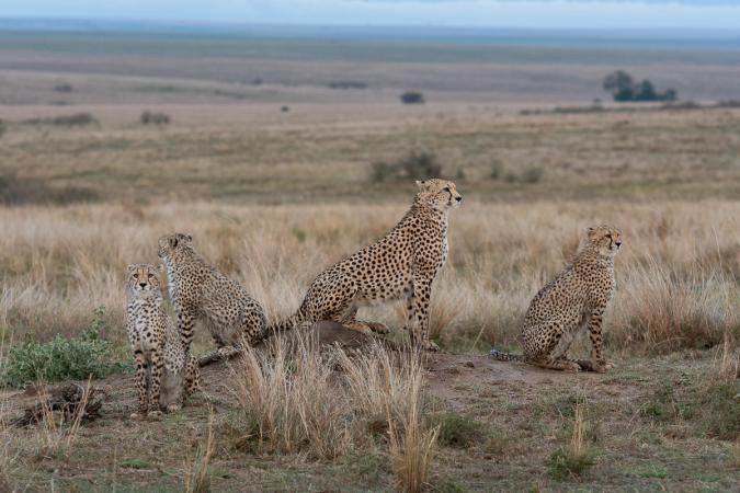 Cheetahs are there too, a mother and her 3 children (a male and 2 females). They are magnificent and they take the pose on their mound of earth. Superb !